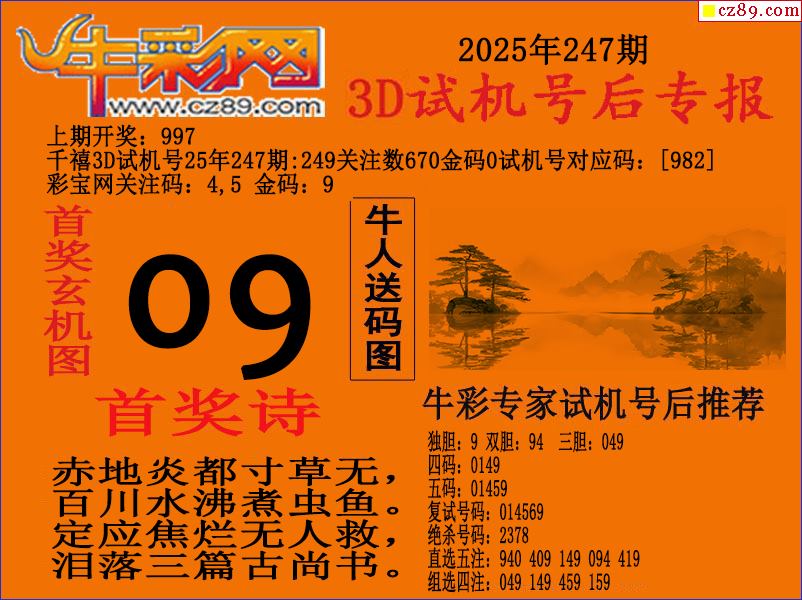 25年247期3d試機號后牛彩網專報
