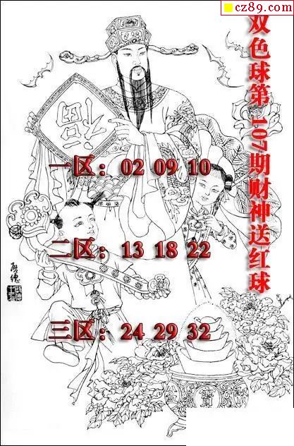 福彩雙色球2025年107期財神送紅球圖謎