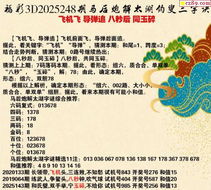 馬后炮解25年248期3d太湖釣叟之 飛機飛