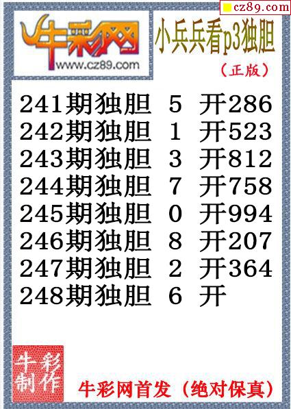 小兵兵獨膽248期體彩P3圖謎(原創)