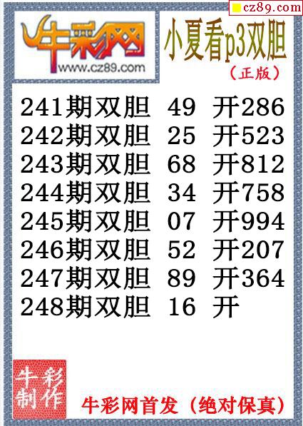 小夏雙膽248期體彩P3圖謎(原創)