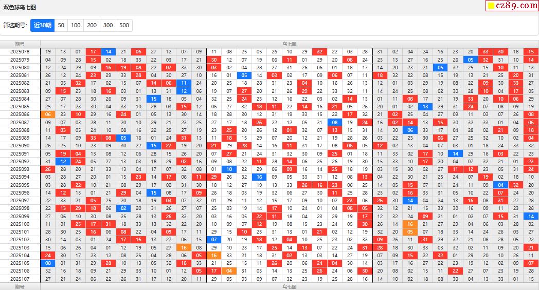 25年福彩雙色球107期烏七圖表