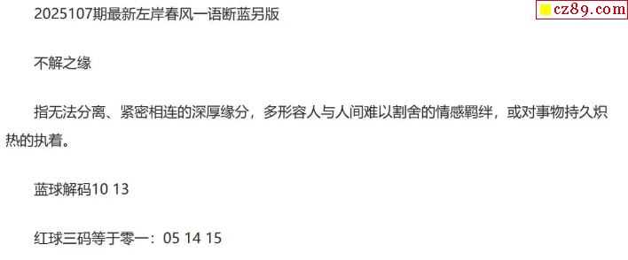 25年福彩雙色球107期 左岸春風一語斷藍另版