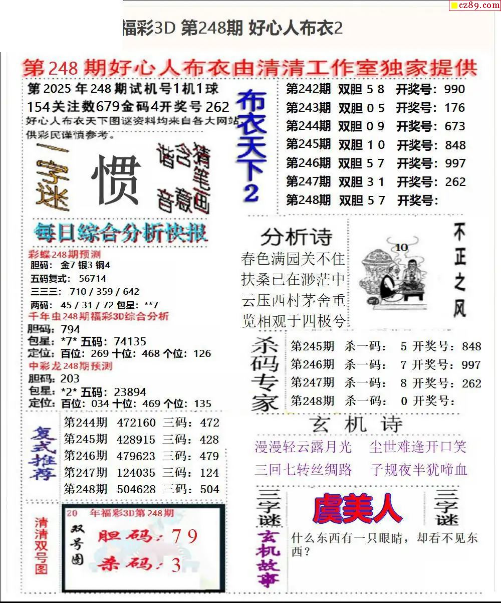 好心布衣2025248期3d圖謎