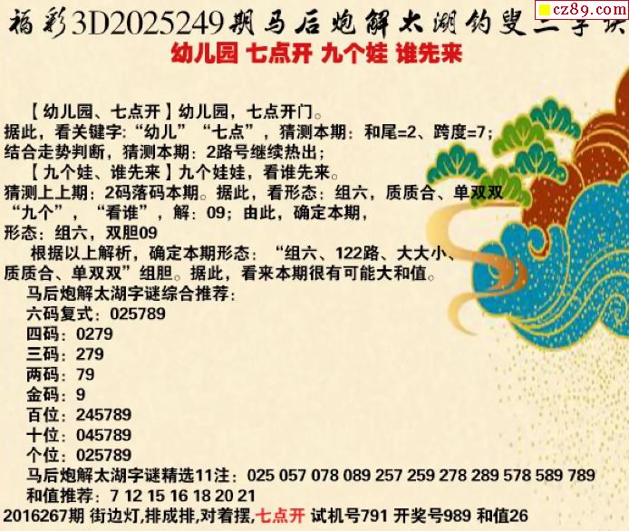 馬后炮解25年249期3d太湖釣叟之 幼兒園