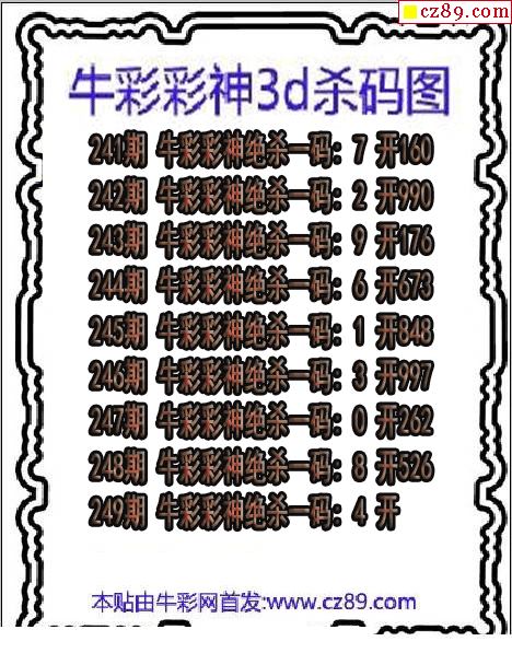 牛彩彩神殺碼2025249期3d圖謎(原創)