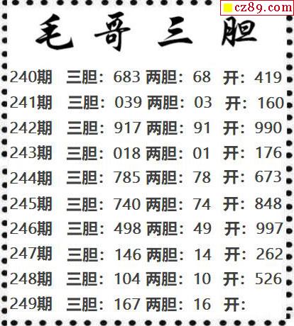 毛哥三膽2025249期3d圖謎