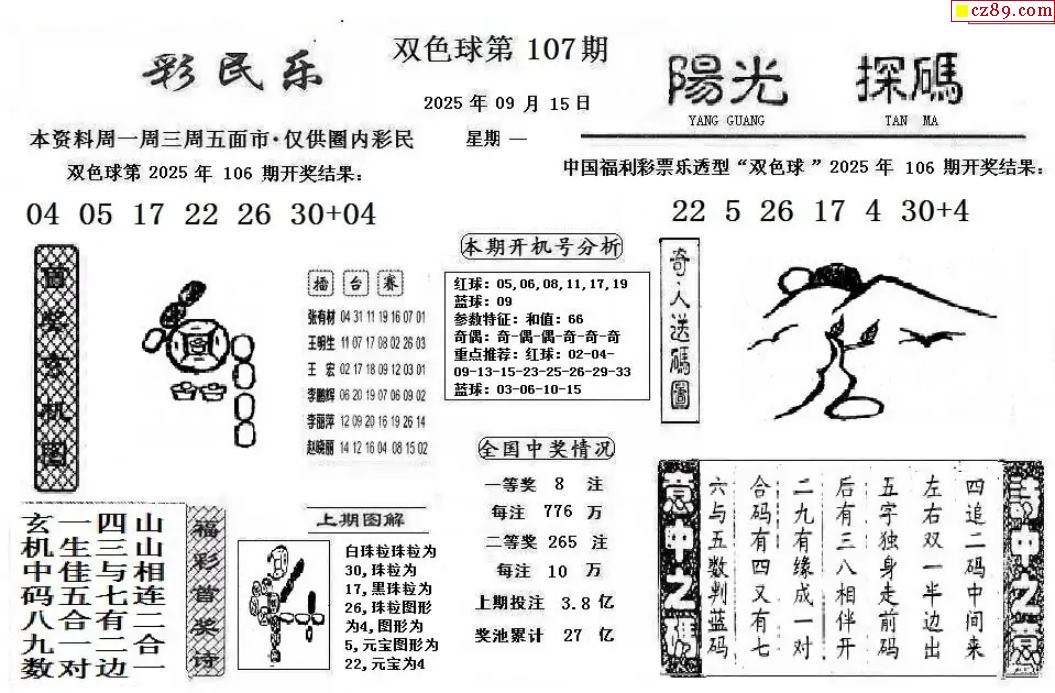 雙色球2025107期 彩民樂+陽光探碼圖文版