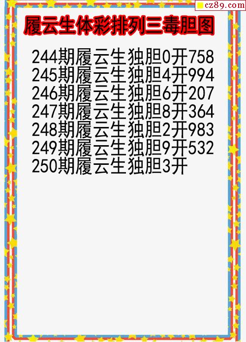 25年250期履云生體彩排列三毒膽圖