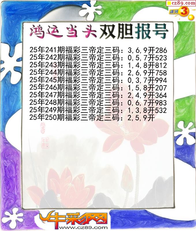 鴻運當頭雙膽報號250期體彩P3圖謎