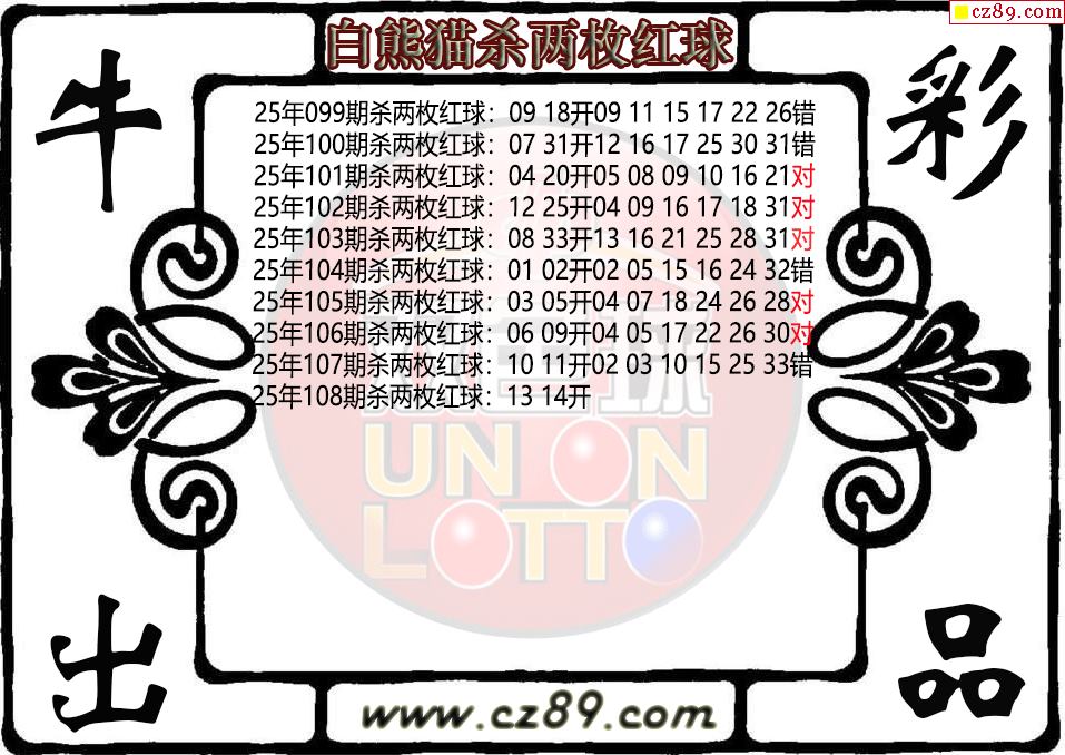 雙色球108期白熊貓殺兩枚紅球圖迷