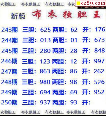 新版布衣獨膽王2025250期3d圖謎