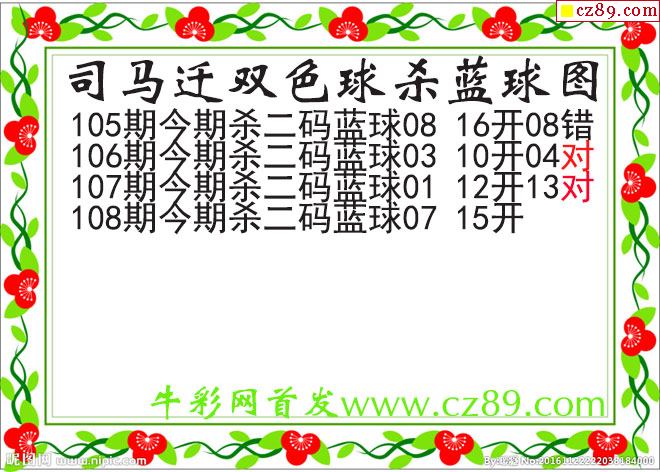 司馬遷殺兩碼藍球108期雙色球圖謎