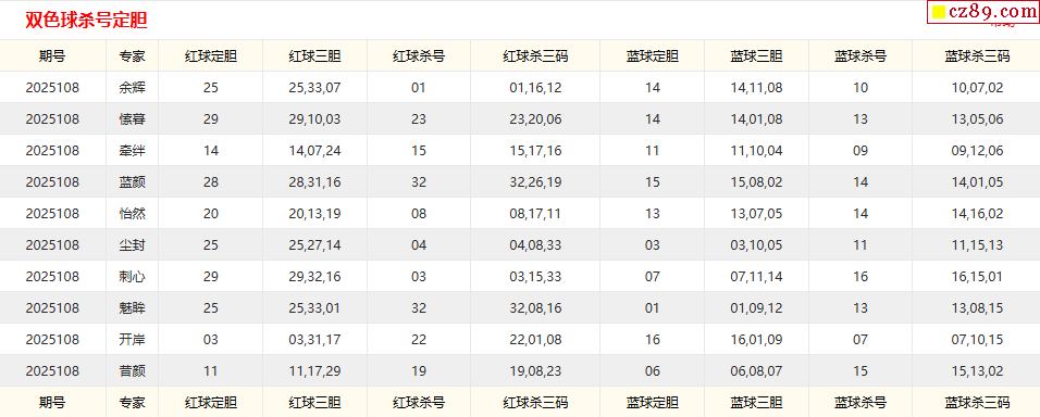 雙色球108期 彩寶貝專家紅藍球殺號預測圖表