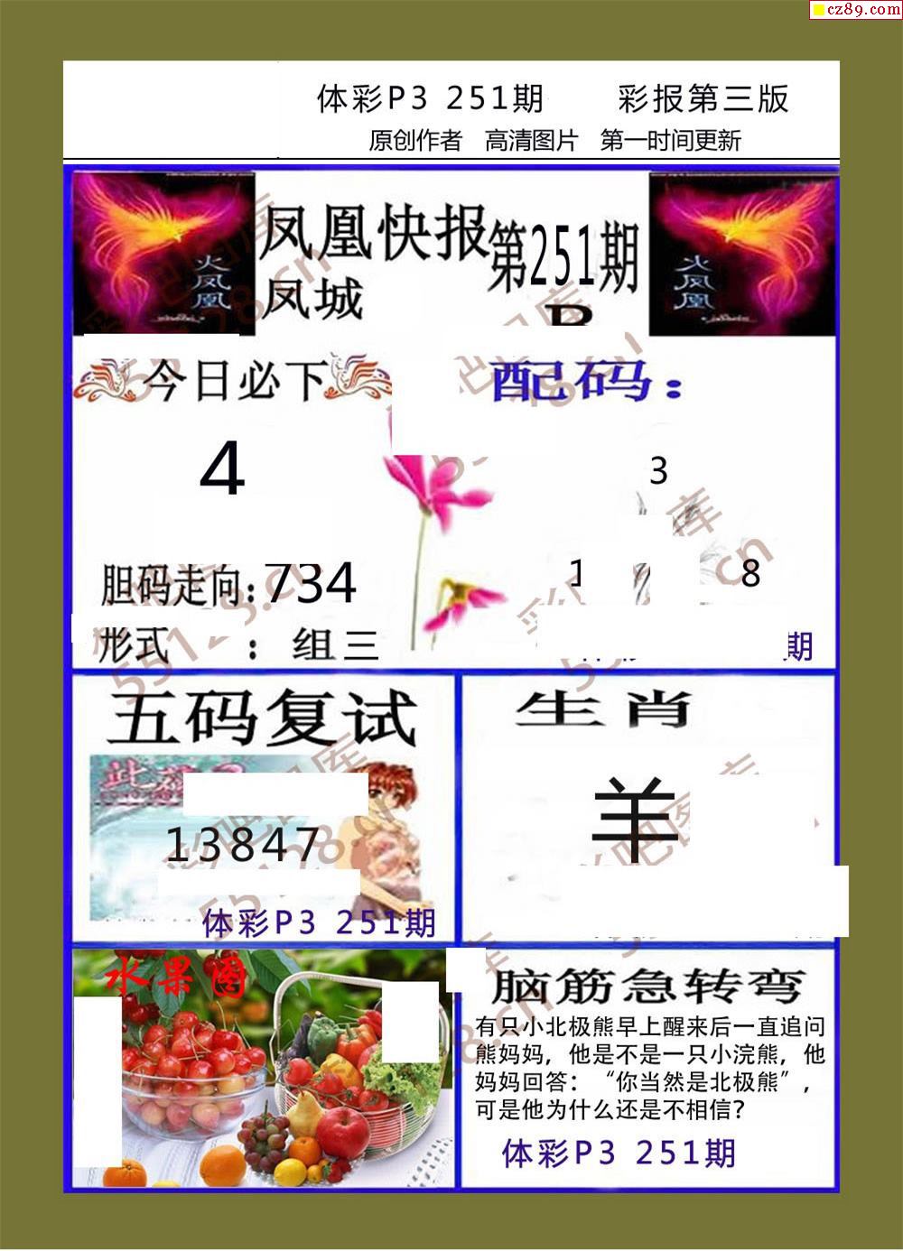 香島彩報251期體彩p3圖謎