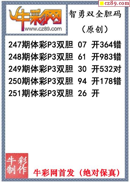 智勇雙全雙膽251期今日P3圖迷(原創)