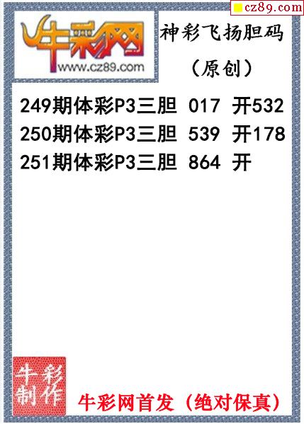 神彩飛揚三膽251期體彩P3圖謎(原創)