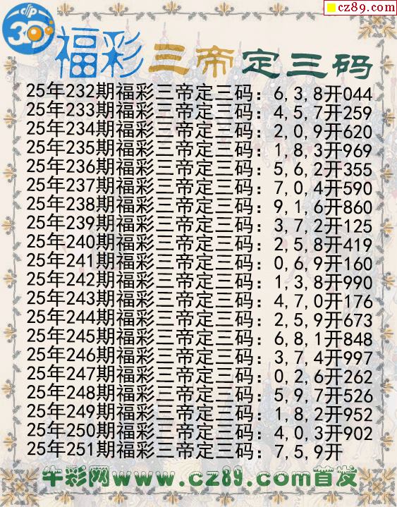 福彩三帝定三碼251期3d圖謎