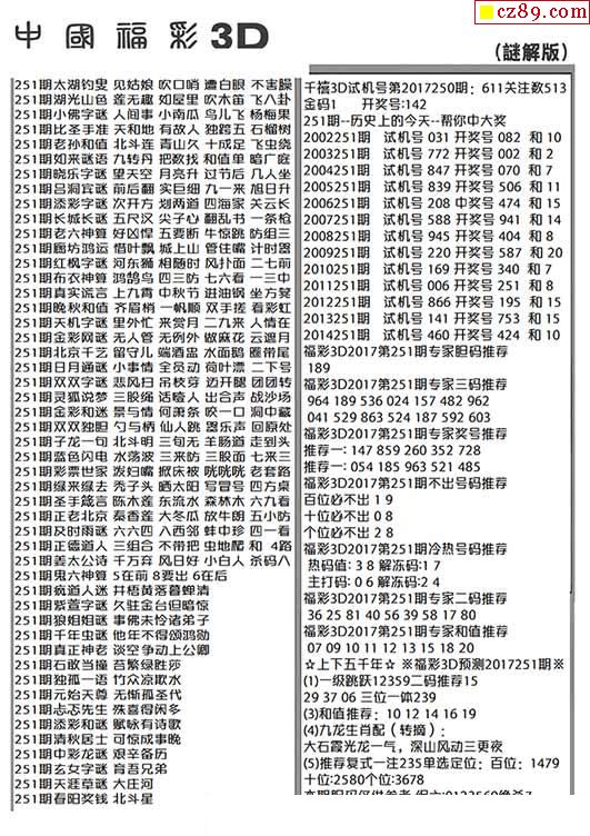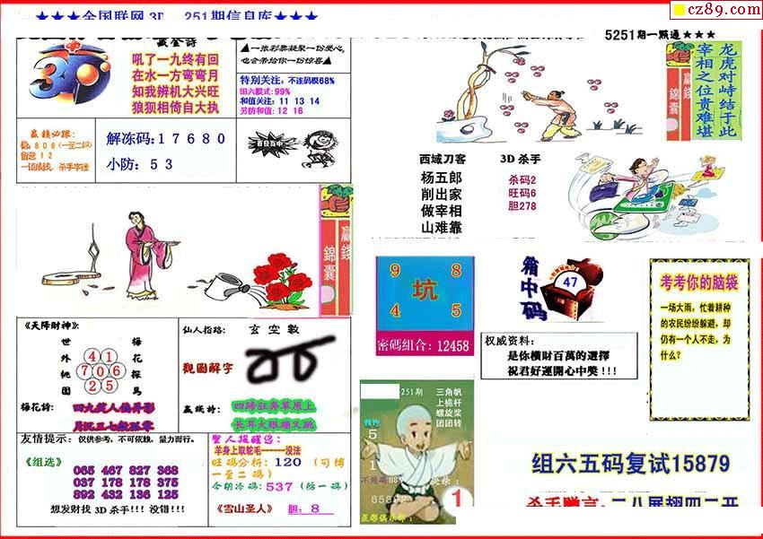 殺手+鑫馬快報+字迷匯總25年251期3d圖謎