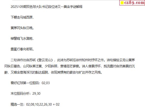 25年福彩雙色球109期 大隊書 記段位詩另一篇