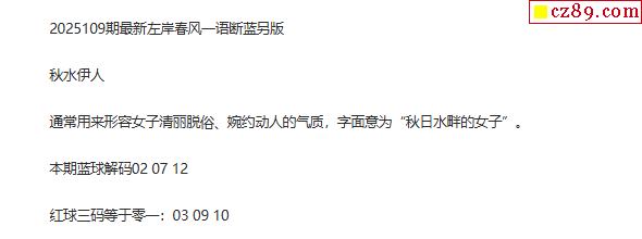 25年福彩雙色球109期 左岸春風一語斷藍另版