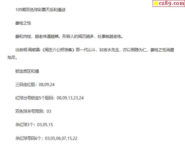 25年福彩雙色球109期 彩票天后和值謎
