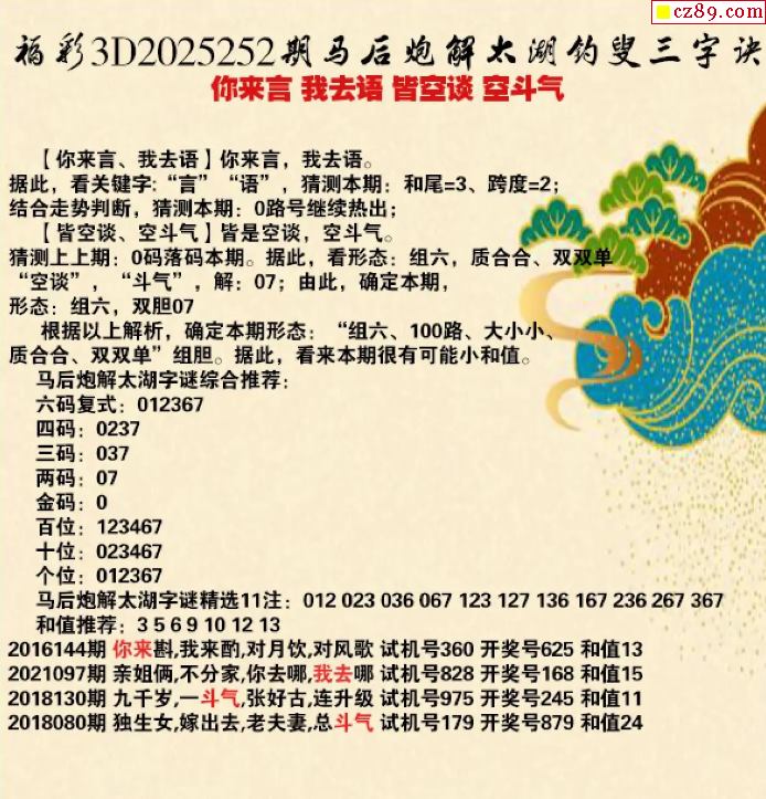 馬后炮解25年252期3d太湖釣叟之你來言