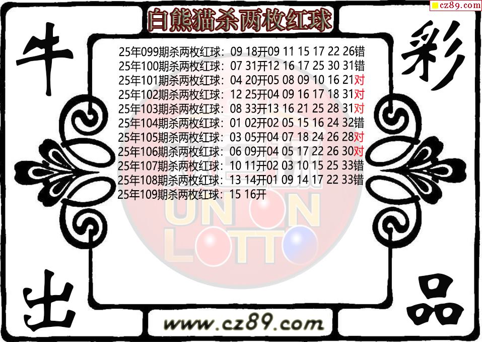 雙色球109期白熊貓殺兩枚紅球圖迷
