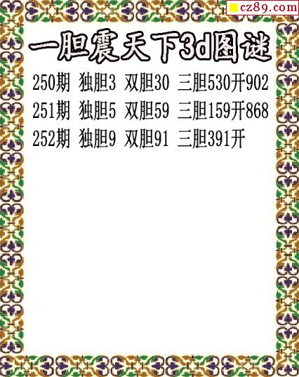 一膽震天下獨膽2025252期3d圖謎(原創)
