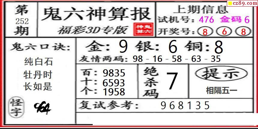鬼六神算2025252期3d圖謎