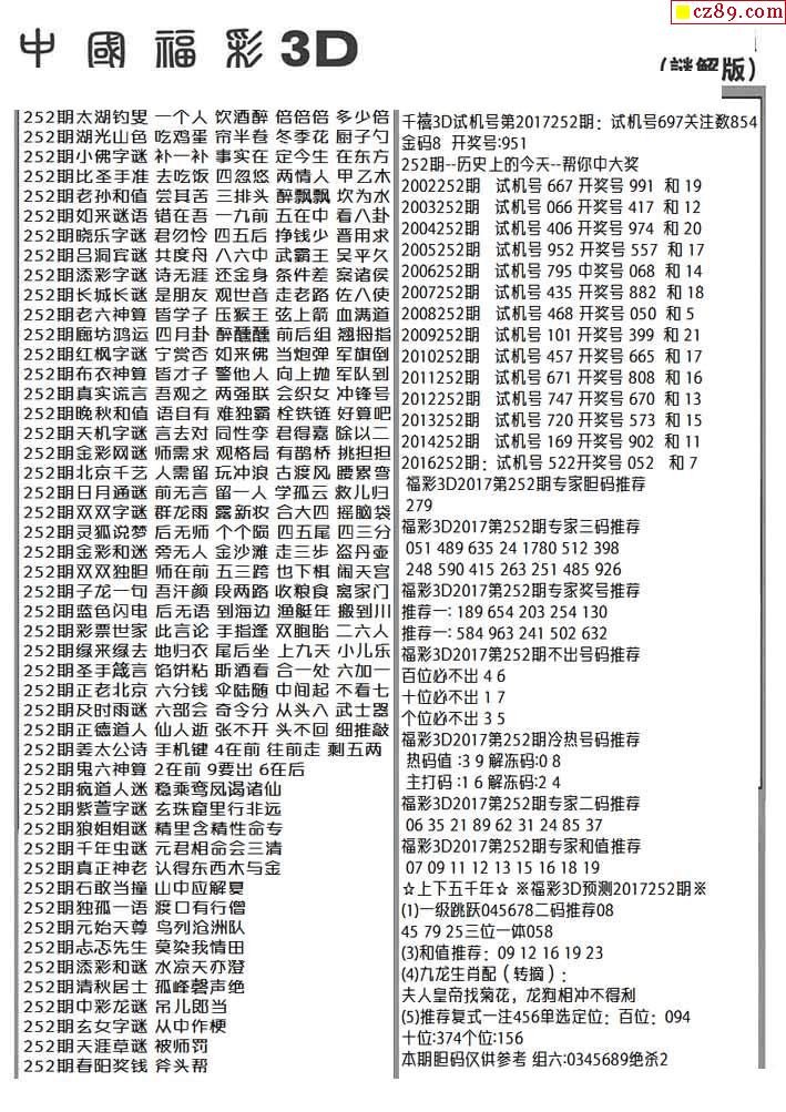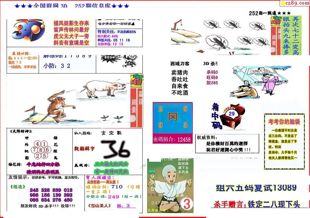 殺手+鑫馬快報+字迷匯總25年252期3d圖謎