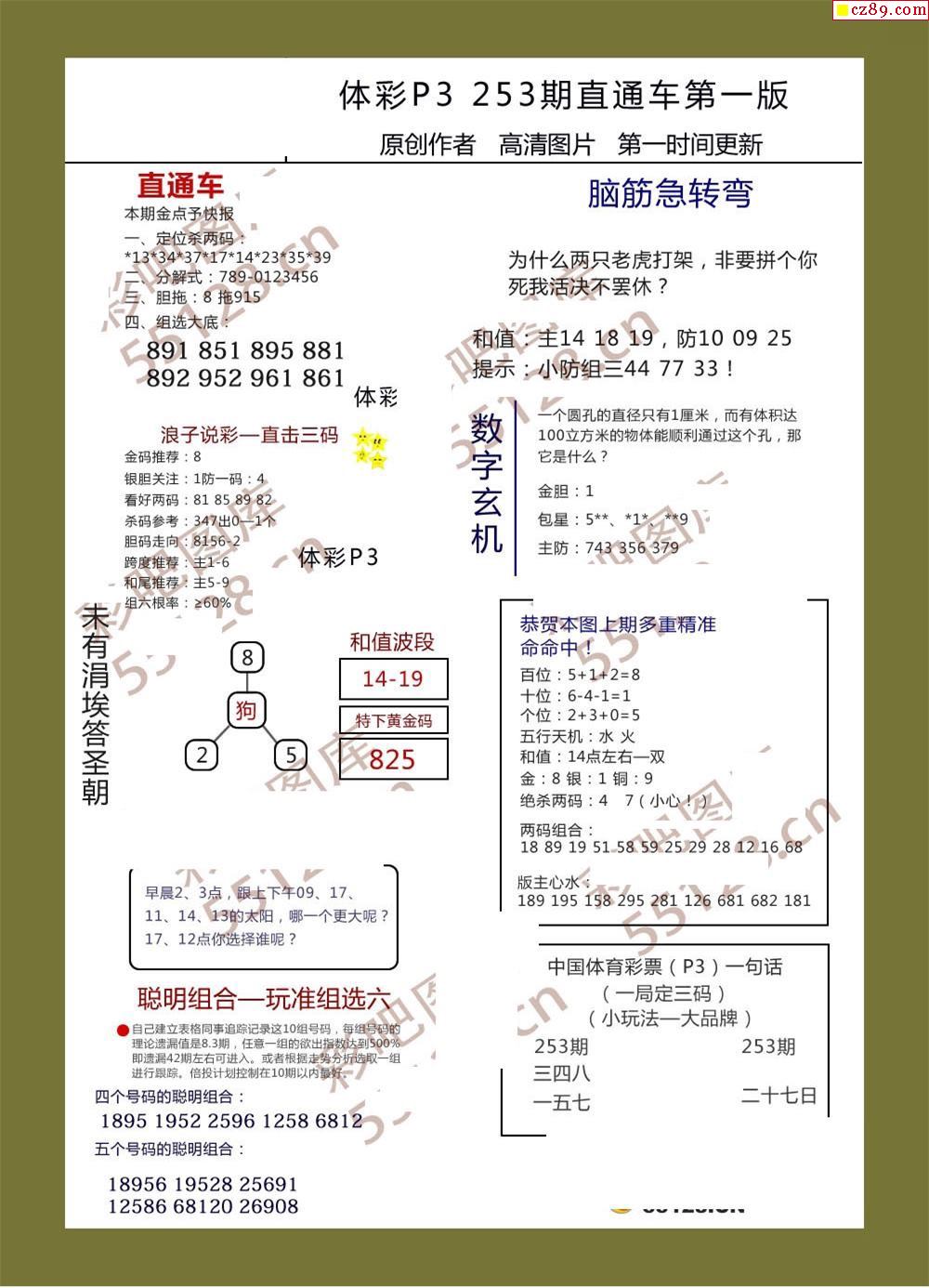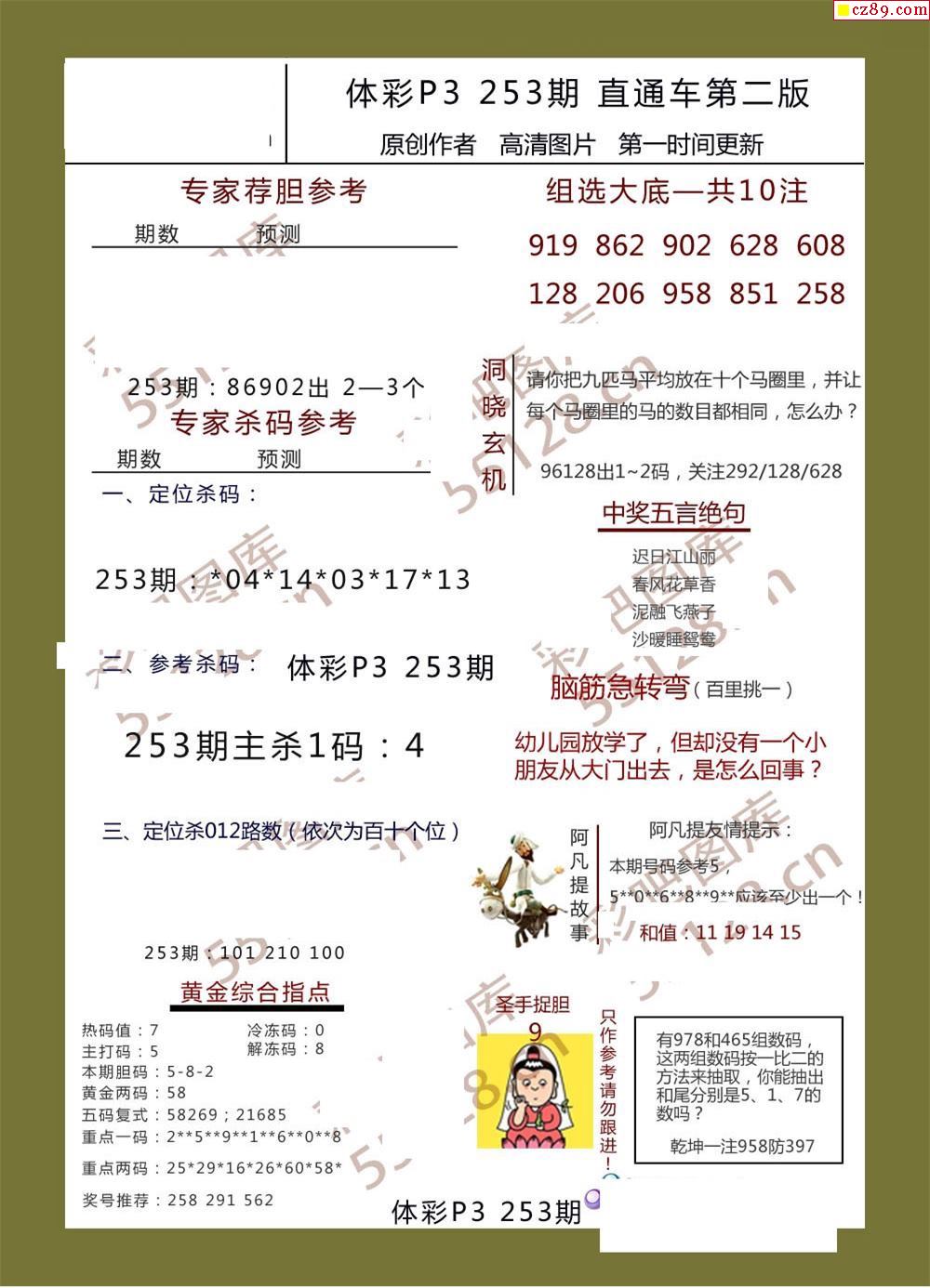 直通車AB版253期體彩p3圖謎