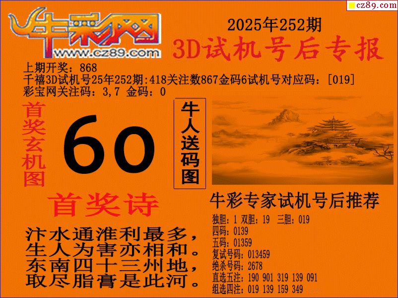 25年252期3d試機號后牛彩網專報