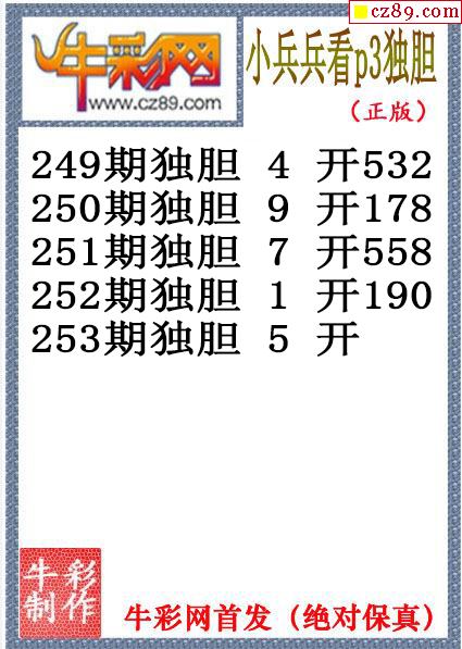 小兵兵獨膽253期體彩P3圖謎(原創)