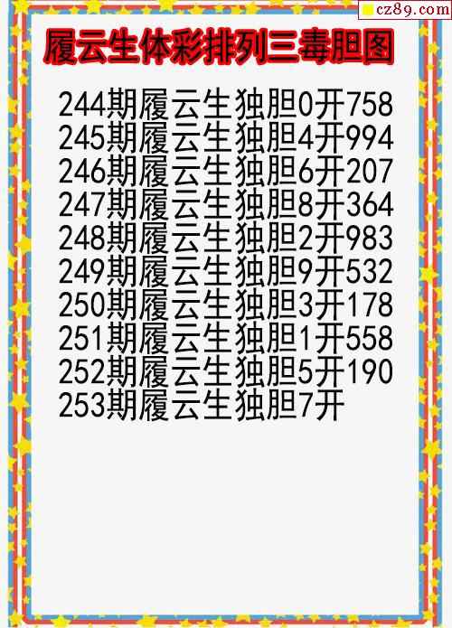 25年253期履云生體彩排列三毒膽圖