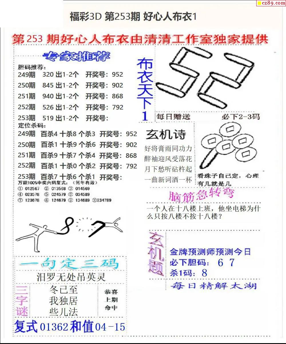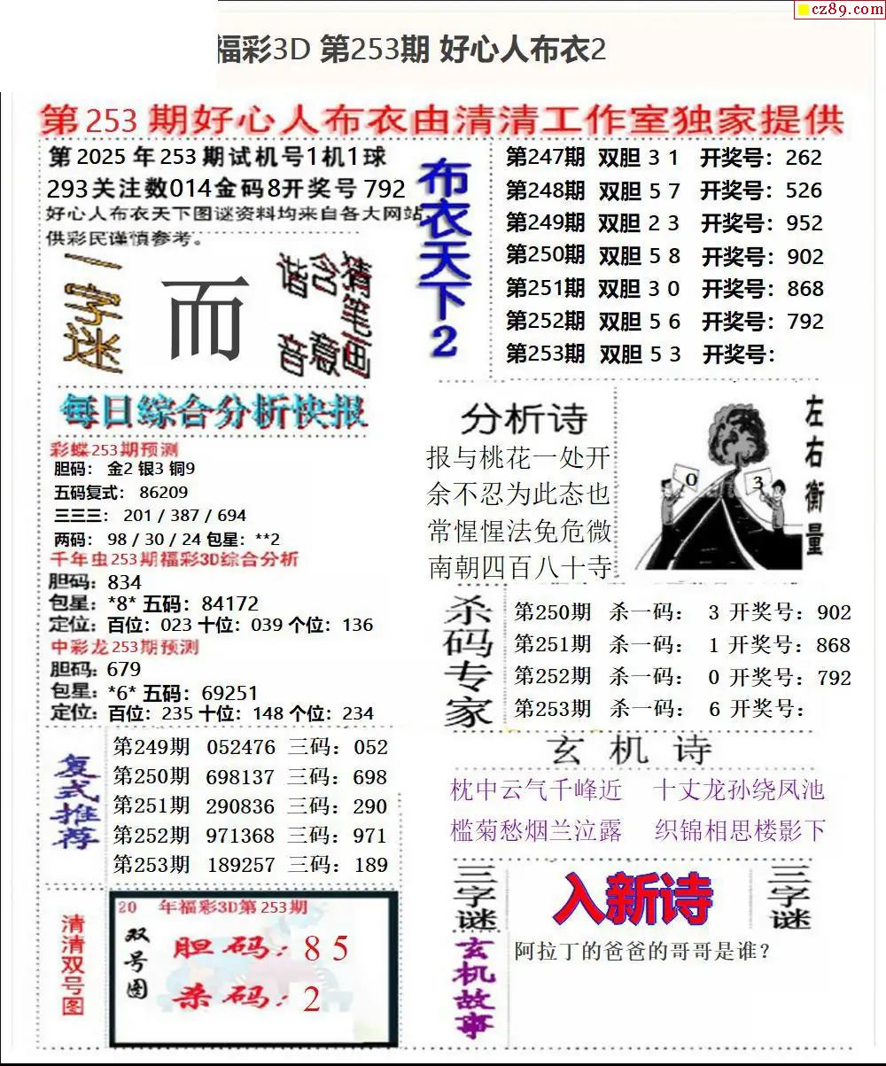 好心布衣2025253期3d圖謎