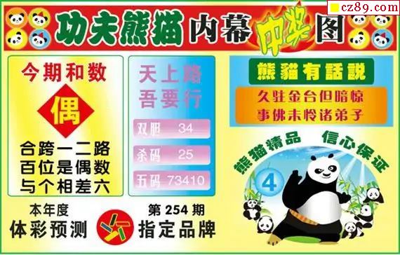 體彩P325年圖迷254期 功夫熊貓內幕中獎圖