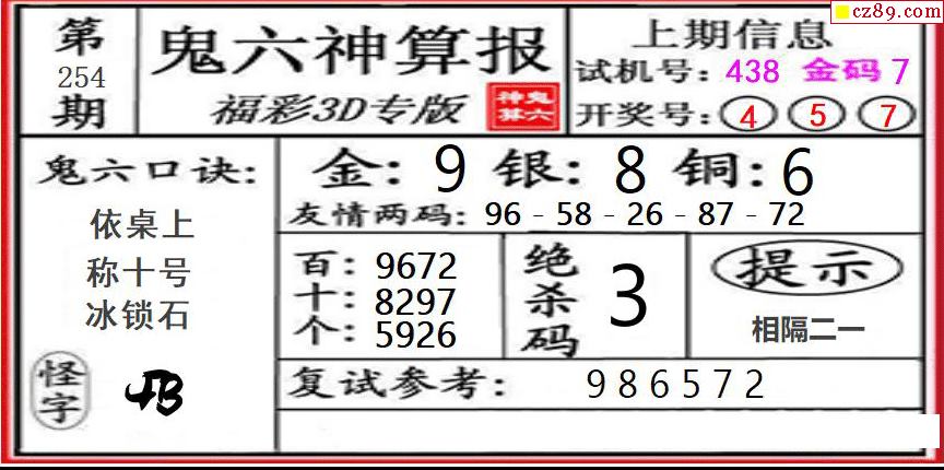 鬼六神算2025254期3d圖謎