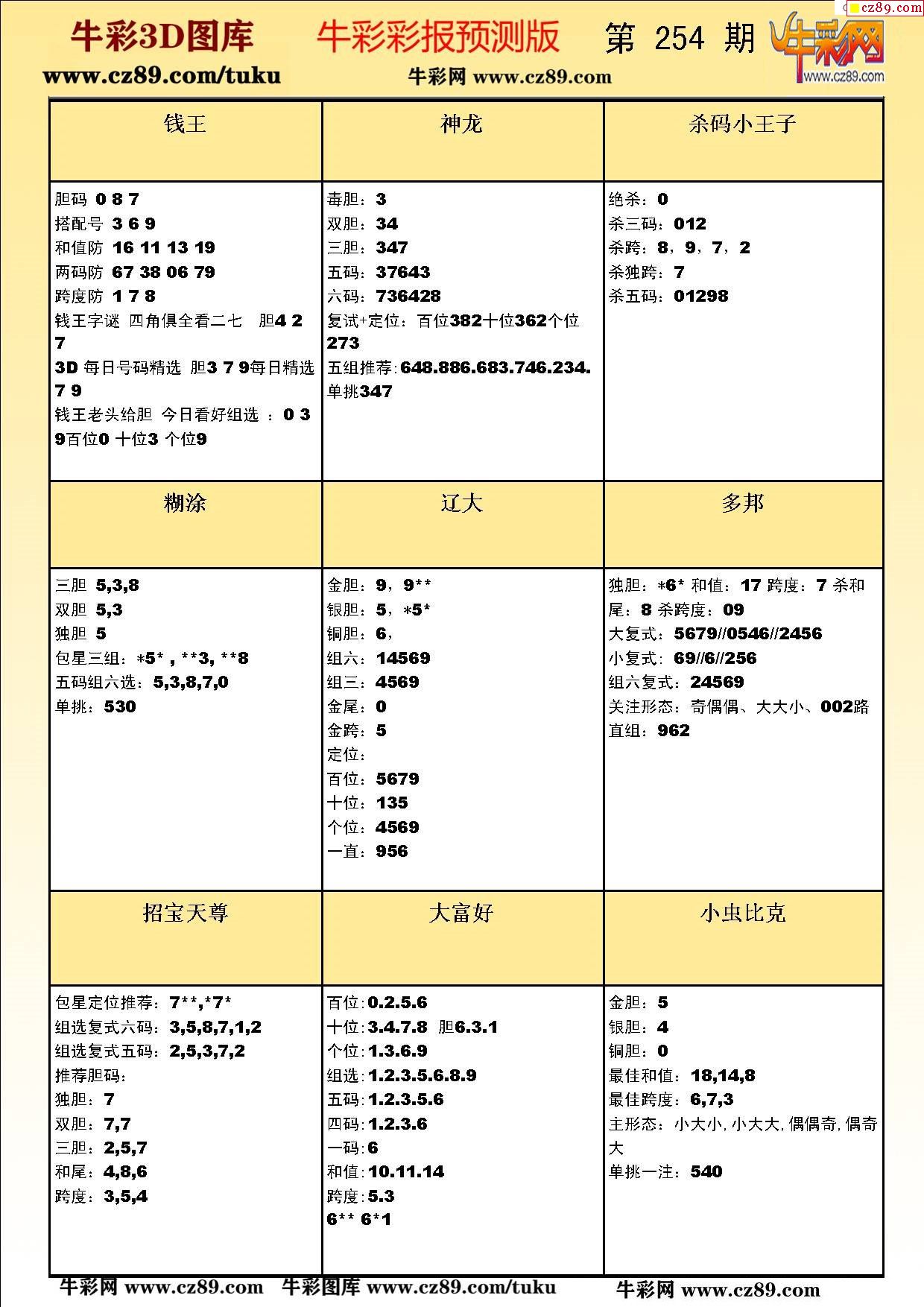 牛彩版3D預測彩報圖25年254期打印版
