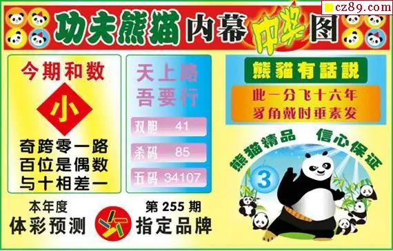 體彩P325年圖迷255期 功夫熊貓內幕中獎圖