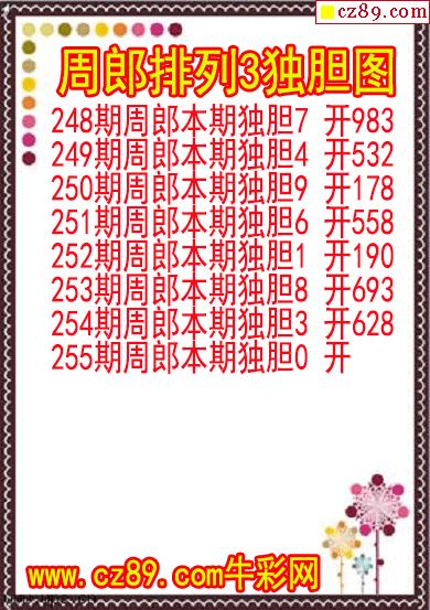 25年255期周郎排列3獨膽圖
