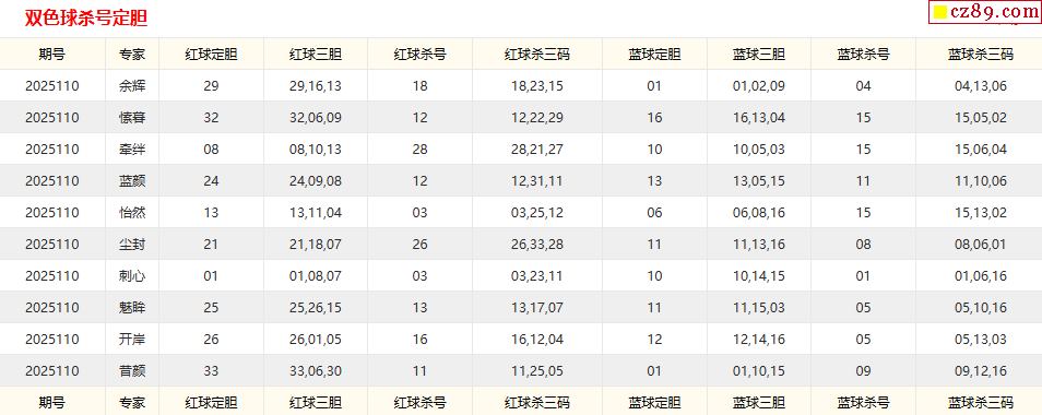 雙色球110期 彩寶貝專家紅藍球殺號預測圖表