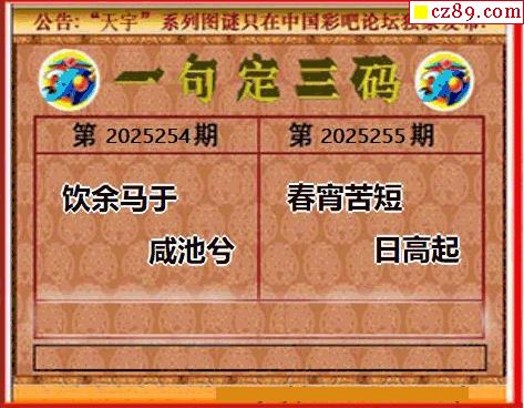 2025255期天宇一句定三碼