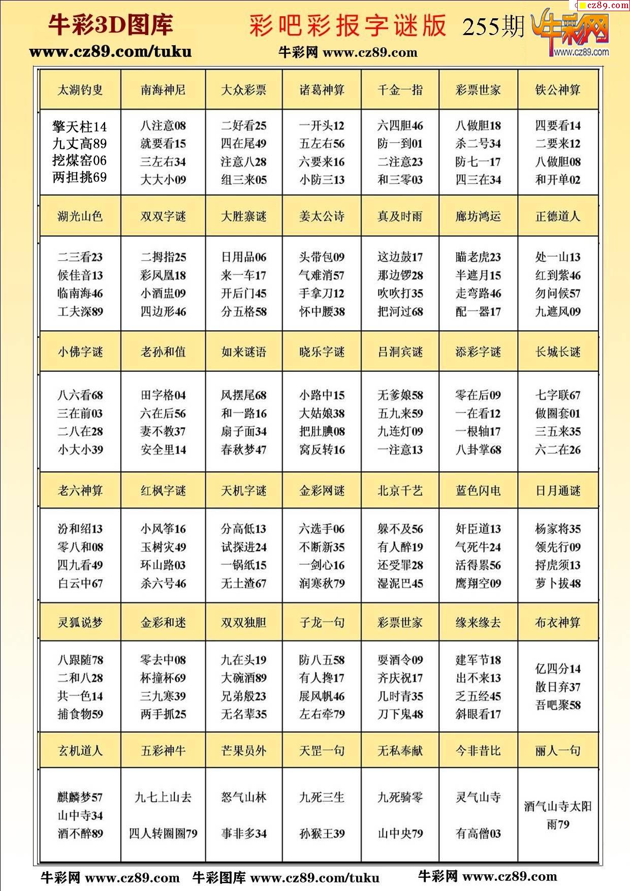牛彩版3D字謎彩報圖25年255期打印版