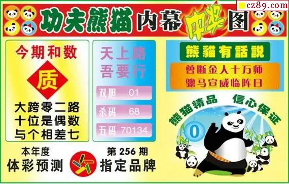 體彩P325年圖迷256期 功夫熊貓內幕中獎圖