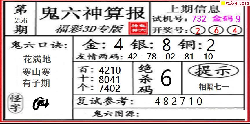 鬼六神算2025256期3d圖謎
