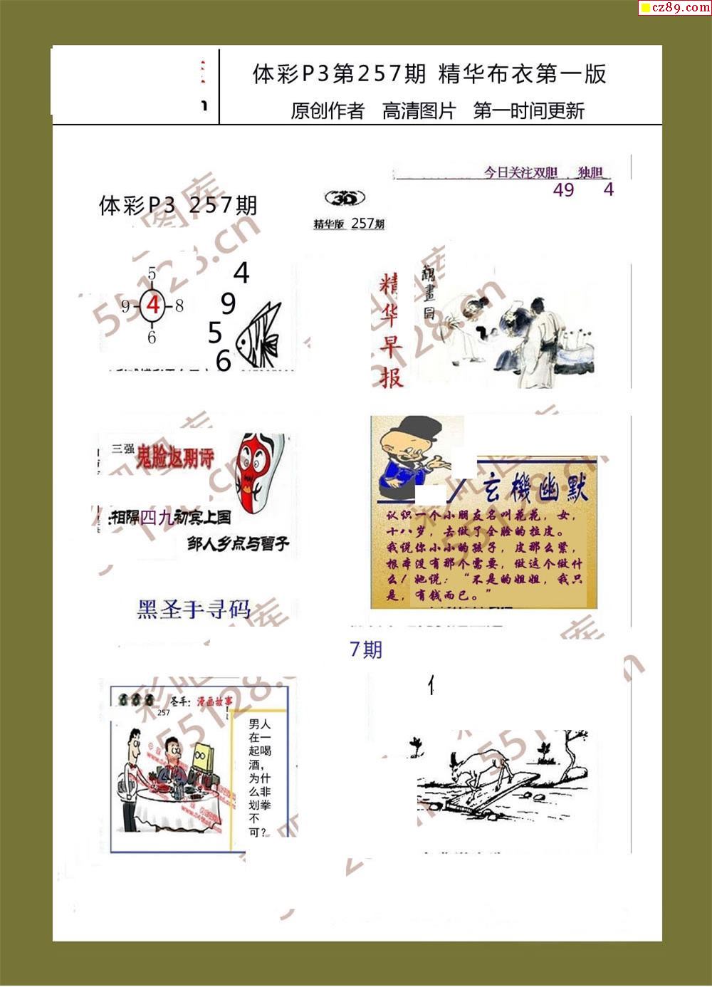 精華布衣彩報257期體彩p3圖謎