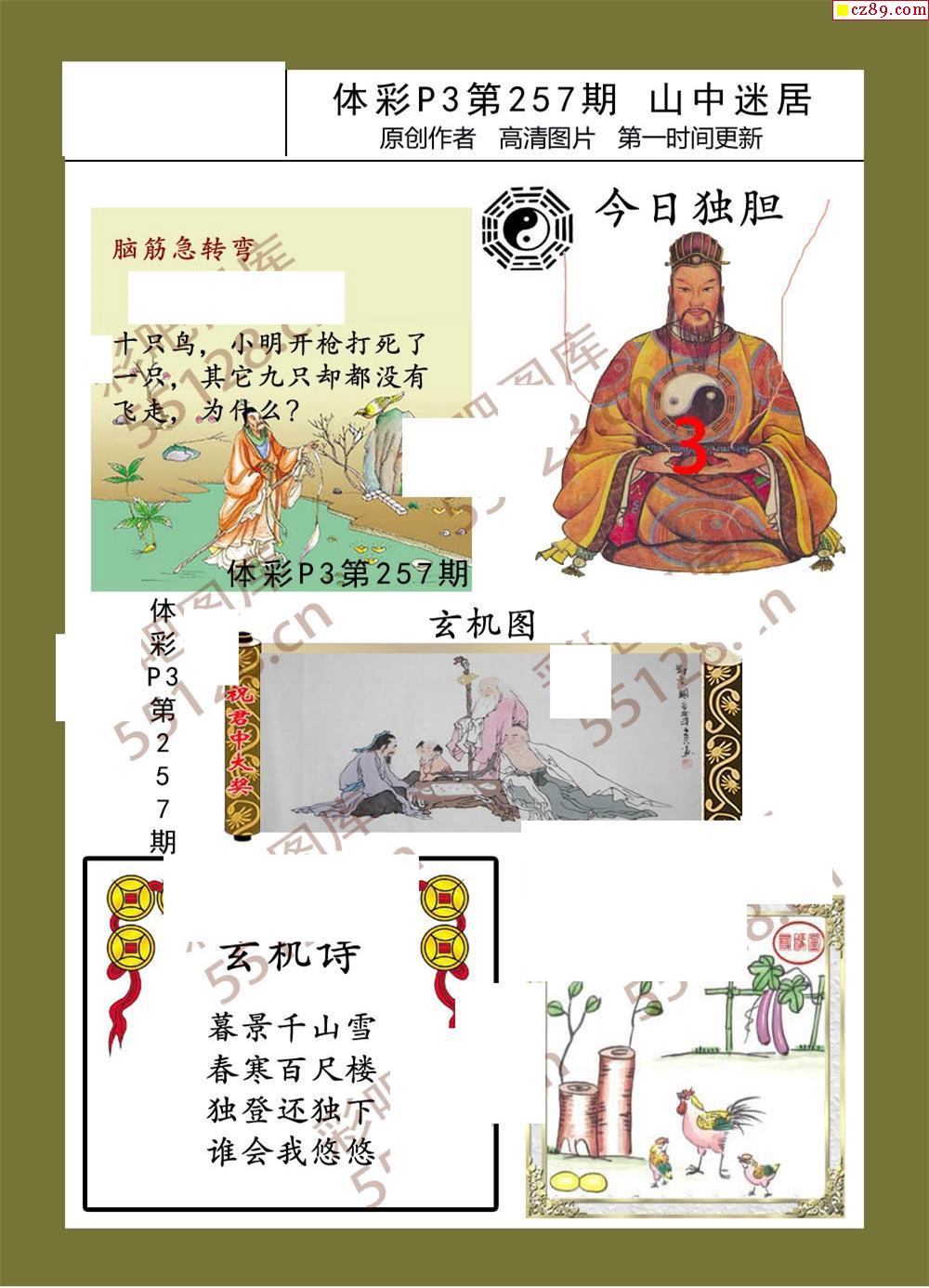 山中迷居257期體彩p3圖謎