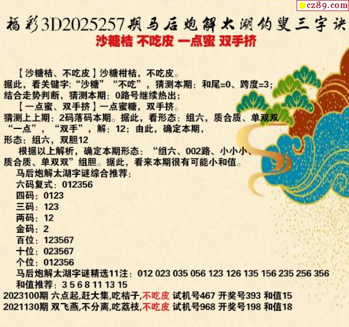 馬后炮解25年257期3d太湖釣叟之 沙糖桔
