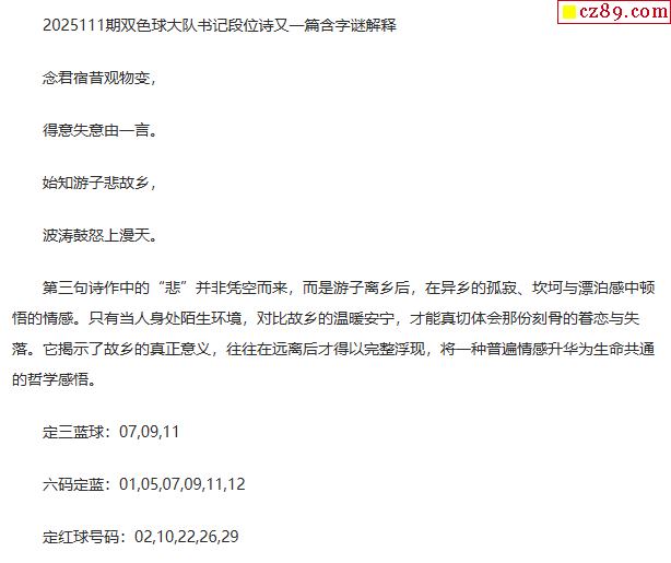 25年福彩雙色球111期 大隊書 記段位詩另一篇